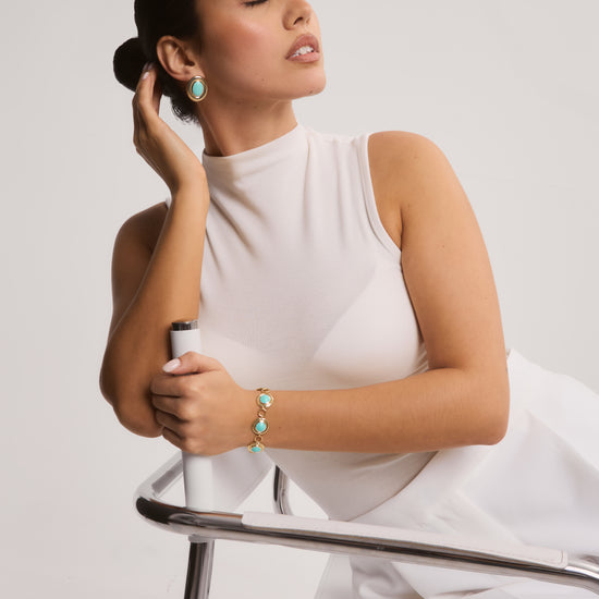 The Amie Bracelet adds a bold, colourful touch to any look. Featuring coloured enamel set along a striking bracelet design. Available in Buttercream, Aqua, and Bordeaux, it’s a standout piece that pairs perfectly with our Amie Earrings for an elevated finish.